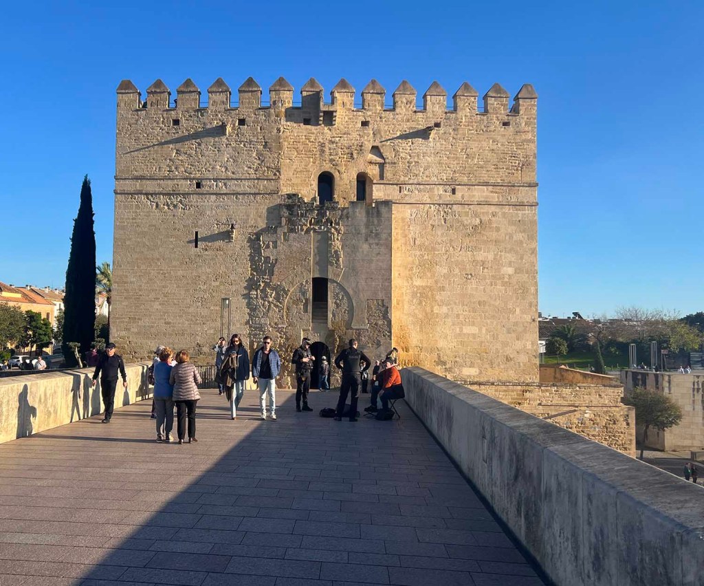 • La Torre de la Calahorra, construida bajo el califato almohade en 1333 para proteger el puente. Se puede ver a dos policías recabando credenciales de un músico para proteger el puente de actuaciones sin licencia.