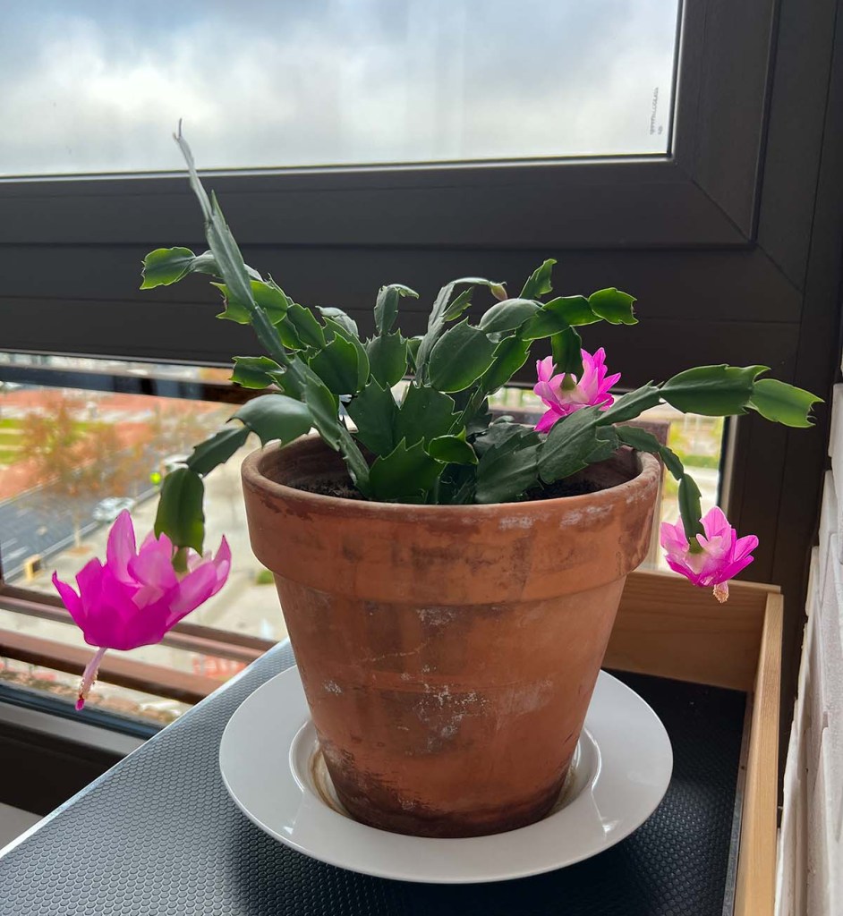 Today’s photo comparisons are from my walk Wednesday afternoon (plus tree shadows on the palace walls). I just found them all interesting. But I couldn’t stop there because the Christmas cactus continues to share its joy.