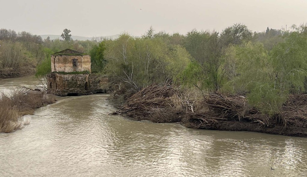 When I walked home from El Arcángel Shopping Mall, I walked alongside the river and saw how high the waterline had recently been. I came up alongside Martos Mill (molino de Martos) which was a medieval watermill from 1237 to 1550. From 1550 to 1555, it was replaced with a hydraulic system and built up into the building that stands today. In 1559, it became a fulling mill where woolen cloth was cleaned and beaten, and treated for use. In 2001, the mill was renovated and the Water Museum was added. The museum is currently closed because it filled with water (and mud) during the recent storms. I’ll be sure to go back in the future.