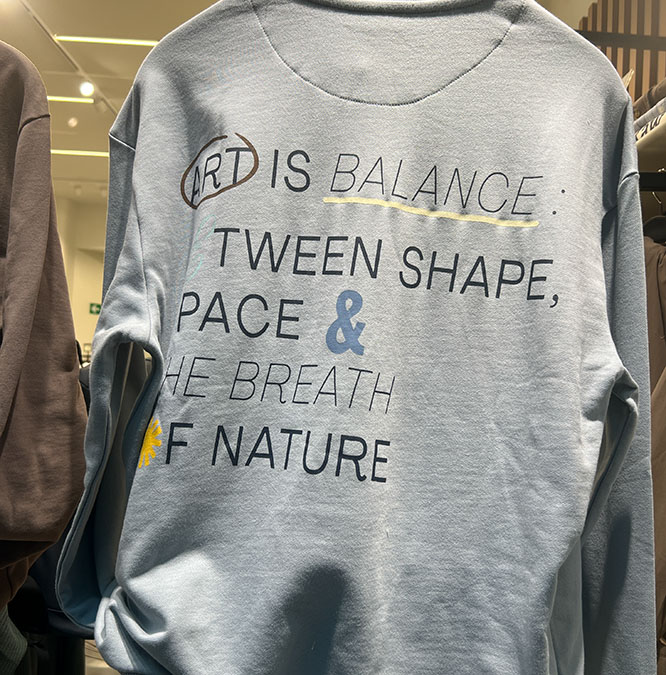 • “El arte es equilibrio: entre la forma, el espacio y el aliento de la naturaleza.” El arte también podría equilibrarse con una tipografía adecuada y un aforismo coherente.