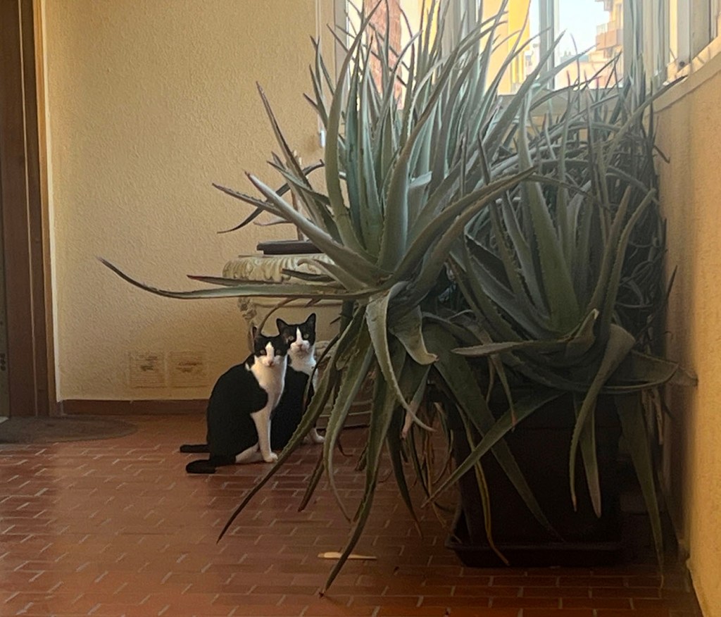 Hablando de un tema completamente diferente: ayer por la tarde me senté en el pasillo para que los gatos pudieran explorar. Un pajarito se posó en el alféizar de una ventana exterior y los gatos quedaron obsesionados. Esta mañana, después de sus delicias, ambos se sentaron junto a la puerta exigiendo que los dejaran salir.