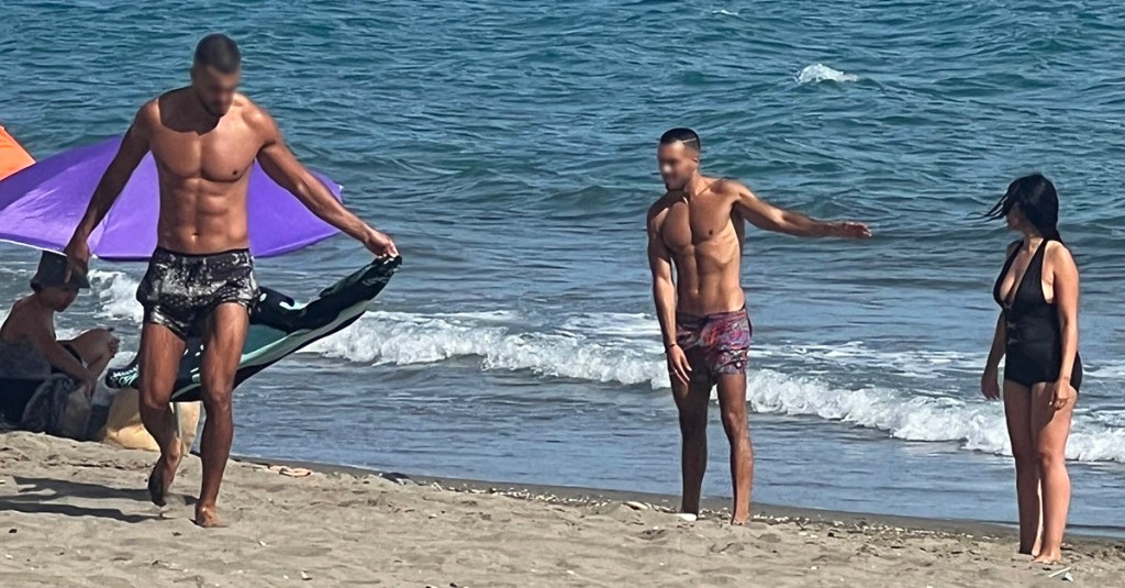 I took my old 7 km / 4.5-mile walk yesterday without a problem (except for blisters on the bottoms of my feet from my sneakers). I walked to the end of the Paseo and the beginning of the city of Benalmádena where I saw the new, permanent pedestrian bridge being completed to connect the coastline walk. This is the site of the make-shift bridge I fell off in May (click here). The bridge will be completed too late for my use, but it was nice to see. No more climbing over a wall and walking the plank. Also nice to see yesterday were the studs of all ages and genders enjoying the beautiful day. I managed to capture just a few for your viewing pleasure.