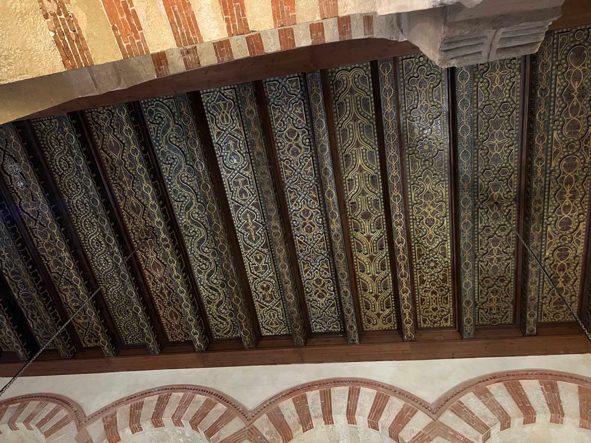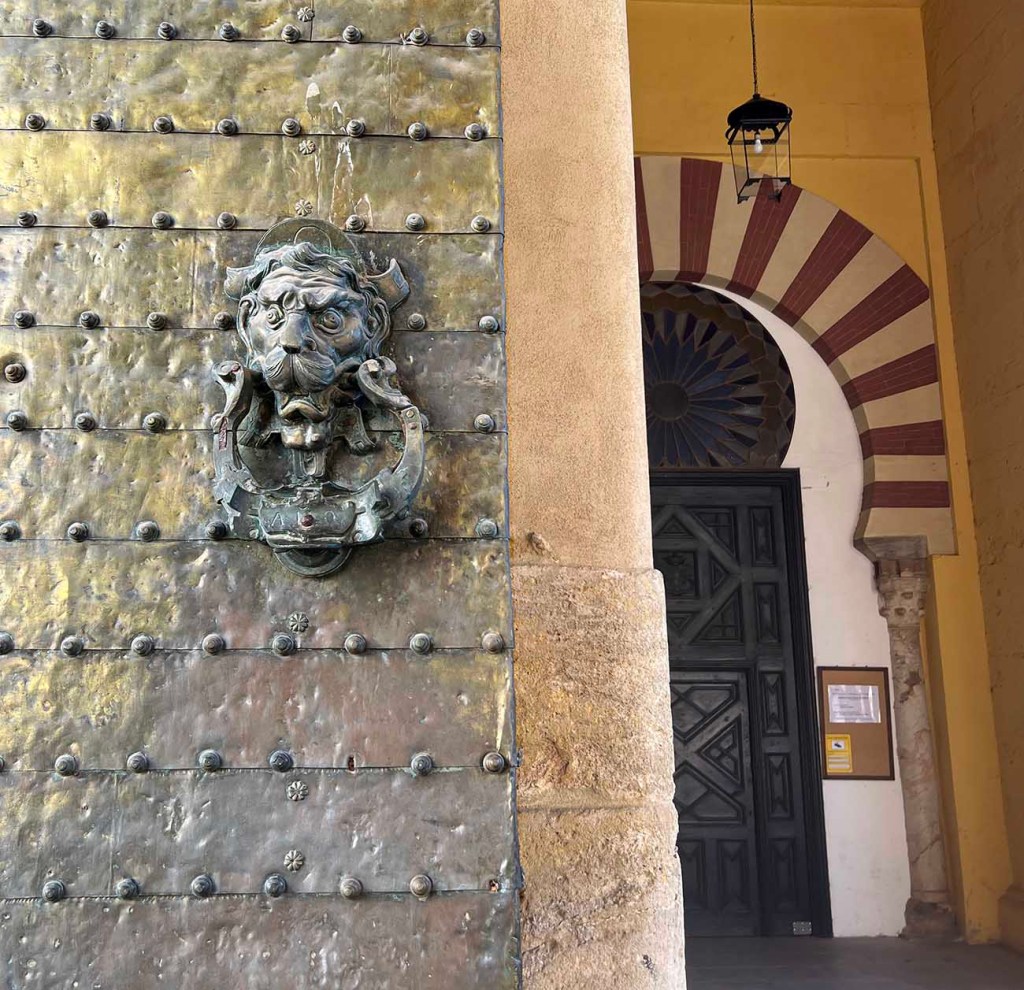 We spent Wednesday with Alyson and Nick, who took an early train up from Málaga. I met them at the train station, a 12-minute walk, and we all went to breakfast at La Sultana. San Geraldo had made reservations for us to see the Mosque-Cathedral of Córdoba at 1. I won’t go into the history of the site. If you’re interested, you can read all about it here. This was our fourth time there and our first since our move here. It doesn’t disappoint. Before becoming known by many as the Mosque-Cathedral, it was simply the Mosque, which was begun in 785 A.D. A grand cathedral, dedicated in 1236, was built in the centre of the enormous space. But the architecture (and the restoration) of the mosque is what I find truly fascinating. Today’s photos are mostly details of the mosque interior.