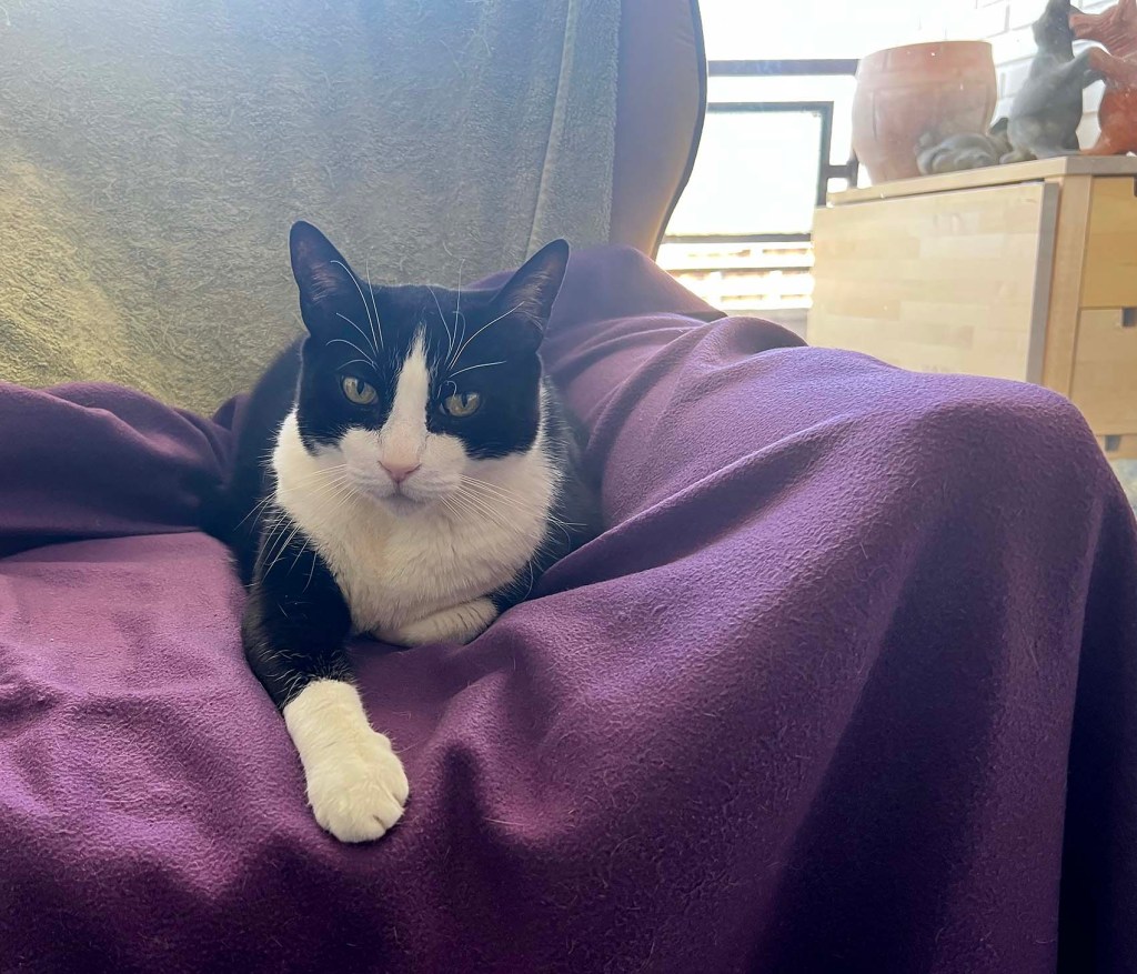 Today’s photos are mostly of Moose. He’s adopted the new comfy chair. Dudo tends to sleep on one of the sofas. The living room furniture is covered in towels and throws to protect the fabric from claws and skid marks. We’re so elegant.