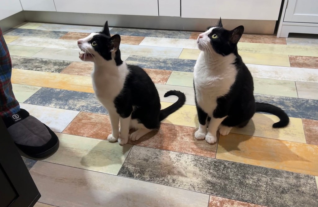 That kitchen floor has grown on me, especially once it was cleaned. It is a great backdrop for the cats.