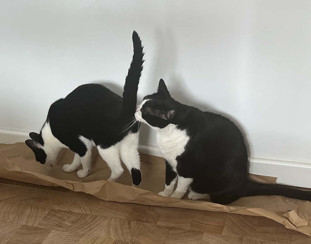 I am feeding my son’s family cat( black and white) over this coming weekend. I visited to find out what I need to do, and he looked at me with great suspicion when I arrived ( the cat not the son!!) but after a while he came to be stroked. Perhaps I should take some tissue paper with me?