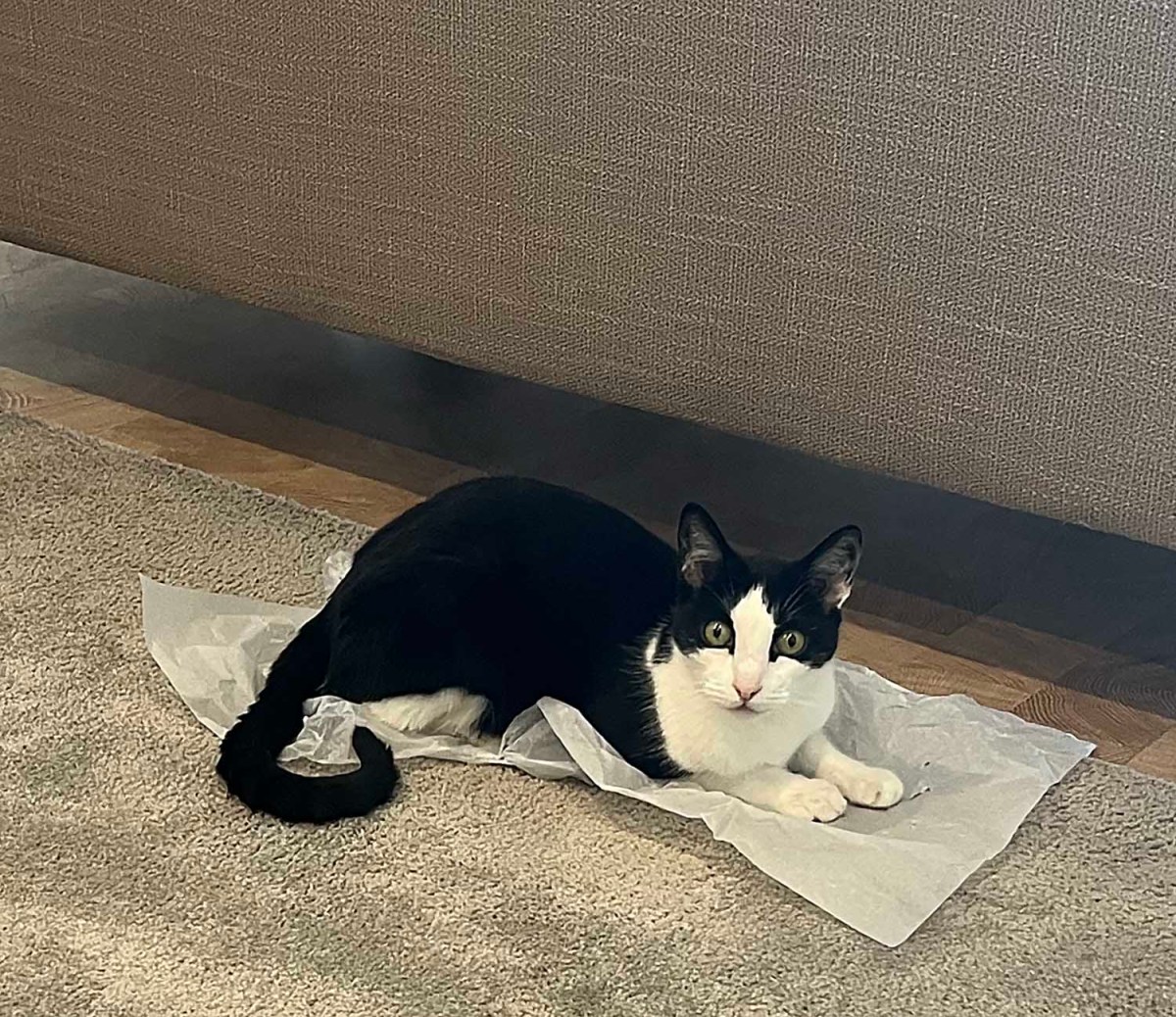 A lo largo de los años, les he comprado muchos juguetes a Dudo y Moose. Sobre todo para Dudo, en realidad. Moose no juega tanto ni por tanto tiempo (normalmente). Sin embargo, a pesar de todos los juguetes texturizados, giratorios, con plumas y con hierba gatera disponibles, el juguete favorito de Dudo es el papel, y sobre todo, el papel de seda. Recientemente hemos recibido papel de embalaje de varios paquetes que nos entregaron y lo he esparcido por toda la casa. De hecho, puede que esté desperdiciando y compre un paquete de papel de seda, porque es, sin duda, su favorito. Le encanta atacarlo y hacerlo volar por los aires. Lo tiro cuando empieza a destrozarlo.