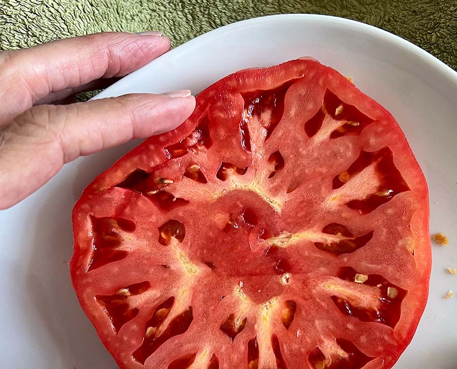 At top is a photo of a really big tomato (in case you weren’t sure). Below, watch that first step; it’s a doozy.