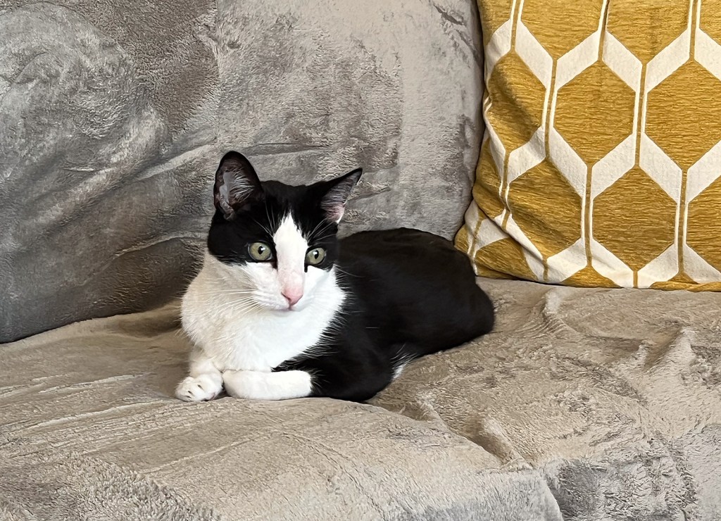 I’ve had an assortment of throws and towels covering our new living room furniture to protect it from cats’ claws. It always looks awful in there. So, I ordered new throws to look less offensive since, unless we have visitors, that’s what we have to see all the time. Of course I couldn’t find anything to match the sofas (which are greige—a cross between gray and beige) so I got two large light gray throws and I found a throw for the chair (that matches it perfectly). The cats are delighted and were immediately settled in. I’ll share a better photo of it all. I’m still looking for new throw pillows.