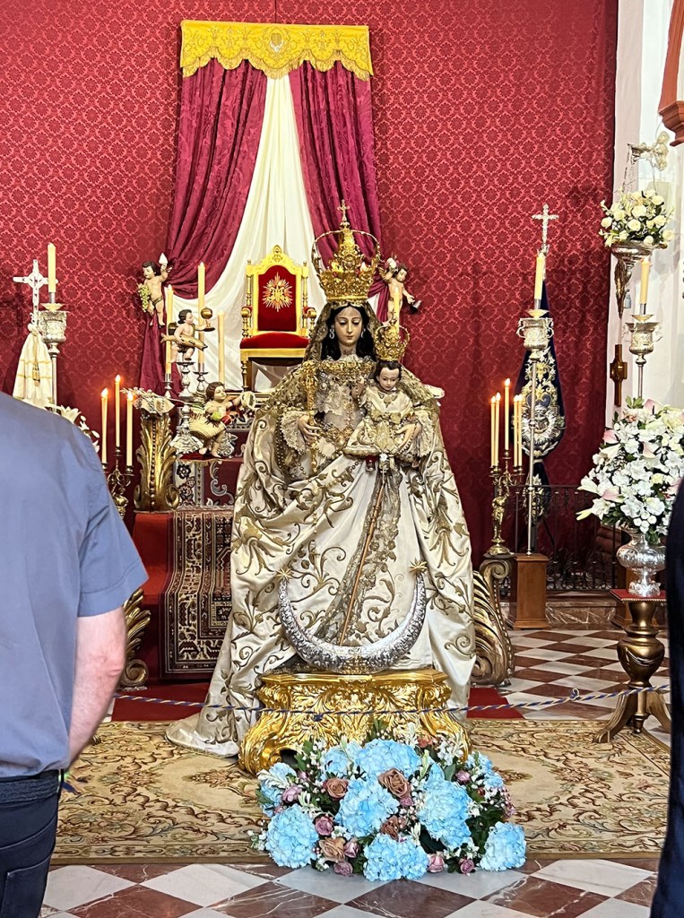 I walked inside to see the Virgin of Socorro. I had thought she must be yesterday’s holiday virgin, the Virgin of the Fuensanta. But, people were simply there to pay homage to this virgin on the special day.