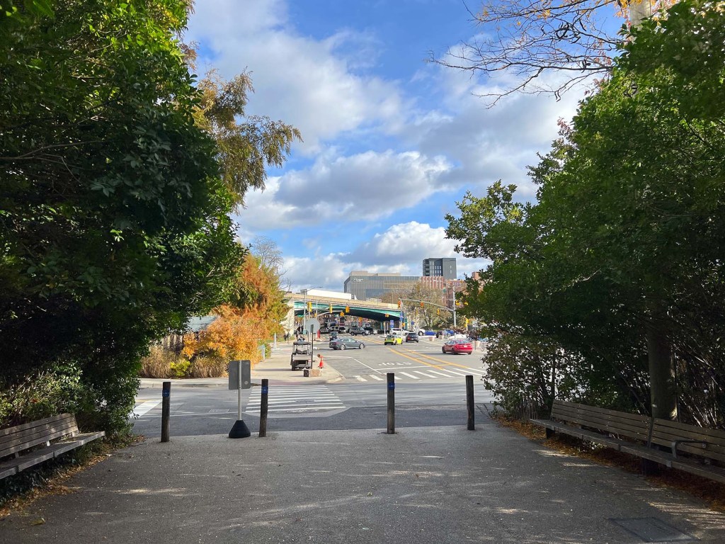 • Entrando en el extremo sur del Brooklyn Bridge Park (Parque del fuente de Brooklyn).