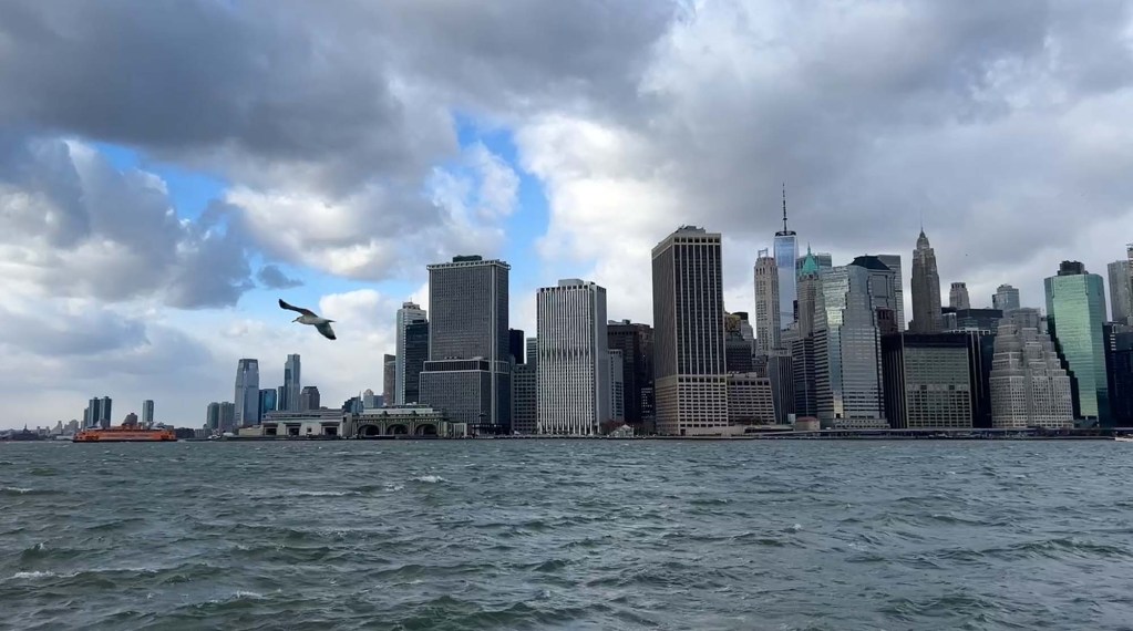 I mentioned while I was in New York that I went for a walk on a beautiful sunny afternoon and thought I’d take photos of the Manhattan skyline from Brooklyn Bridge Park on the East River. Unfortunately, I left my camera in the hotel room. So, I enjoyed a briefer walk along the river (I was too tired to do much more anyway). But I went back Tuesday afternoon before flying off. Skies were mostly gray and cloudy which made for more interesting photos, I think. Winds were cold and gusty. I wore my cheap and ugly scarf and hat (you will eventually see a photo of the scarf), braved the elements, and had an incredible walk. I’ll have to map it and see how much walking I actually did, but it seemed like a lot. I have the photos to prove it. So I’ll share some of them today.