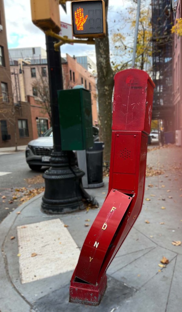 I thought that weird red post was a bent bollard til I saw FDNY… is it a call-box for fire-fighters? I’ve never seen anything like that in Canada — even our fire hydrants aren’t usually red, LOL!