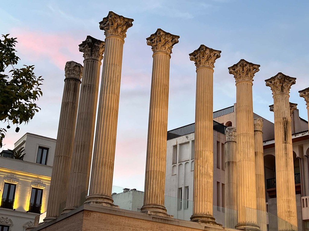 • Templo romano junto al Ayuntamiento, justo antes del atardecer.