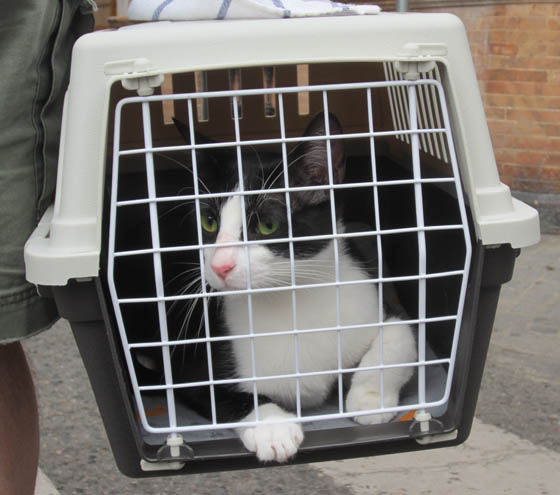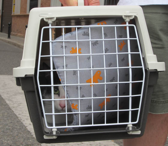 Dudo and Moose moved in with us when they were 10 months old, after we had lived in Seville ten months. They were born on the street and lived in a small cage in a shelter until I found a video clip of them online and fell in love. The photo above has me down on the floor to get a shot of the boys on their first day with us.
