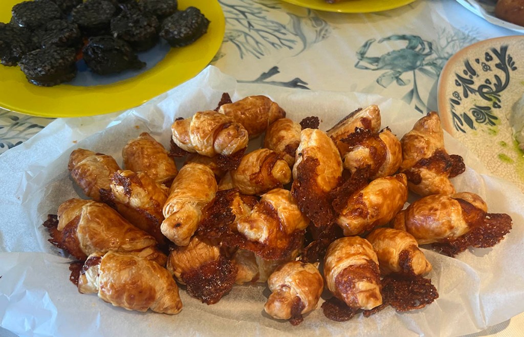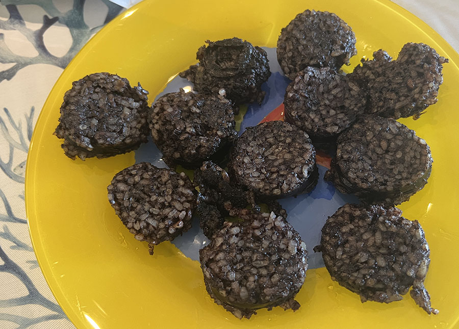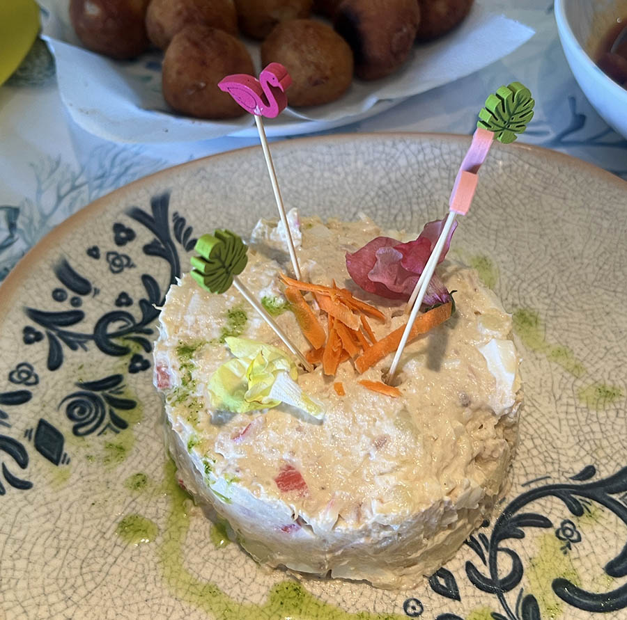 Sunday lunch at Elena and Tynan’s was a tapas feast and you can see all the delectables below. Isa made and brought the croquetas and Elena fried them. Isa also baked a lemon cake and provided vanilla ice cream and “cream” [nata] ice cream.