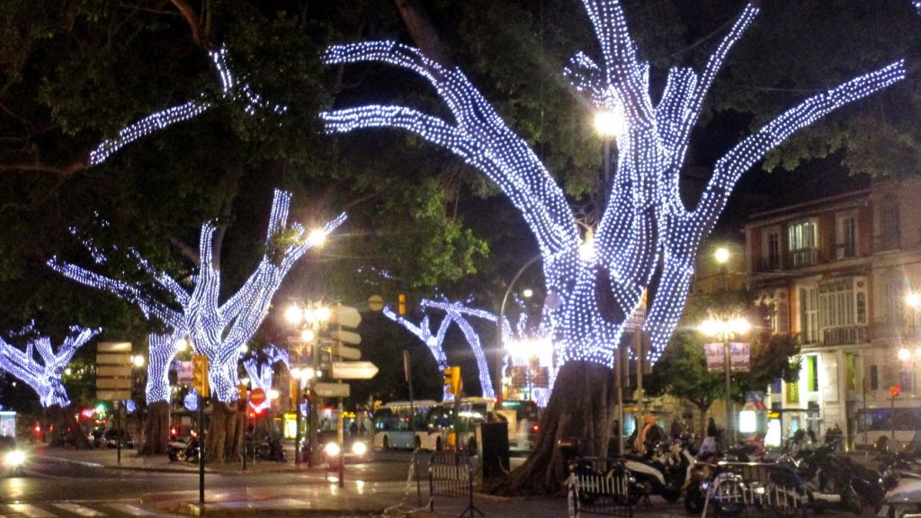 San Geraldo, Judyshannonstreetwhat, and I were in Málaga for New Year’s Eve Eve (that’s December 30). We stopped at the department store El Corte Inglés to pick up a few things. What were we thinking? Traditionally in Spain, the big day for exchanging gifts is Día de Los Reyes (Three Kings Day), which is Epiphany and doesn’t come until 6 January. So, shopping is even more frenzied and there are after-Christmas Day sales adding to the excitement. We escaped the store and the crowds sledding and ice skating in technologically frozen wonders.