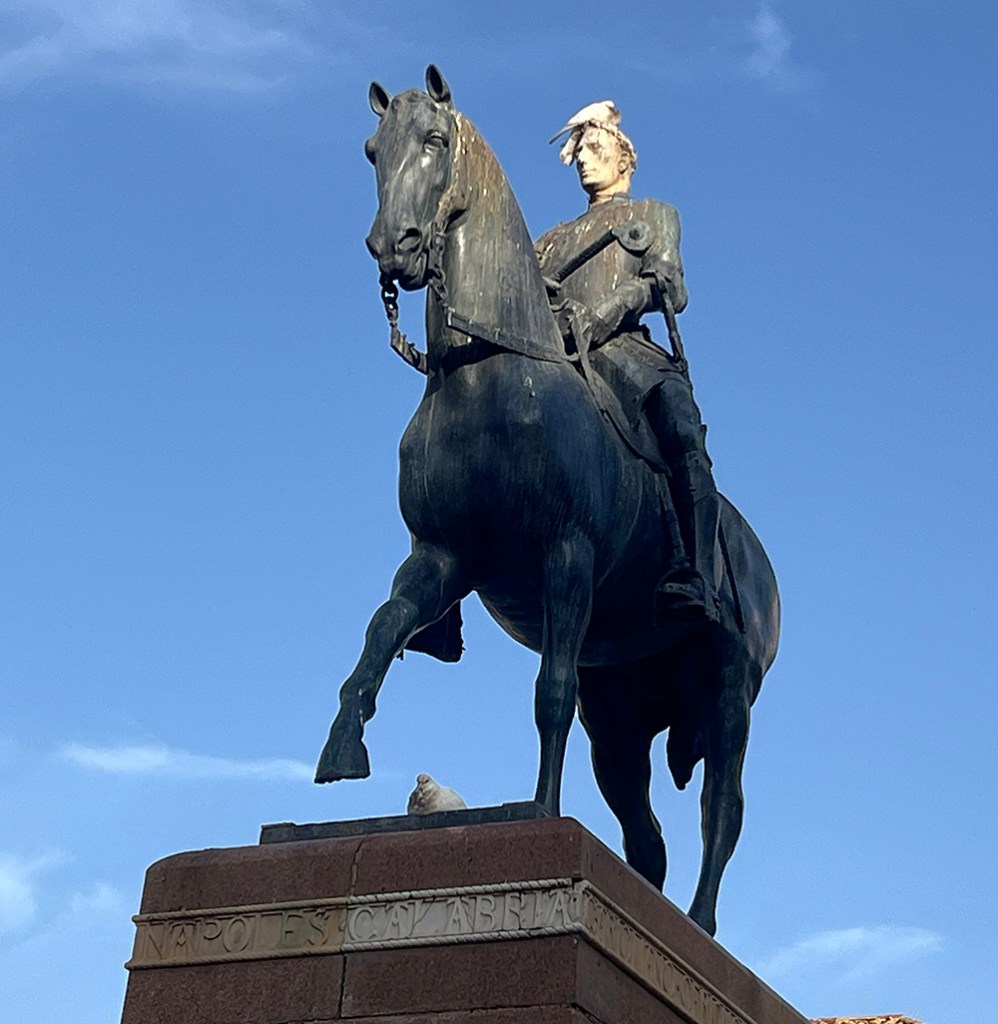• Una estatua de bronce con una cabeza de mármol blanco. O la blanca puede ser simplemente excremento de paloma.