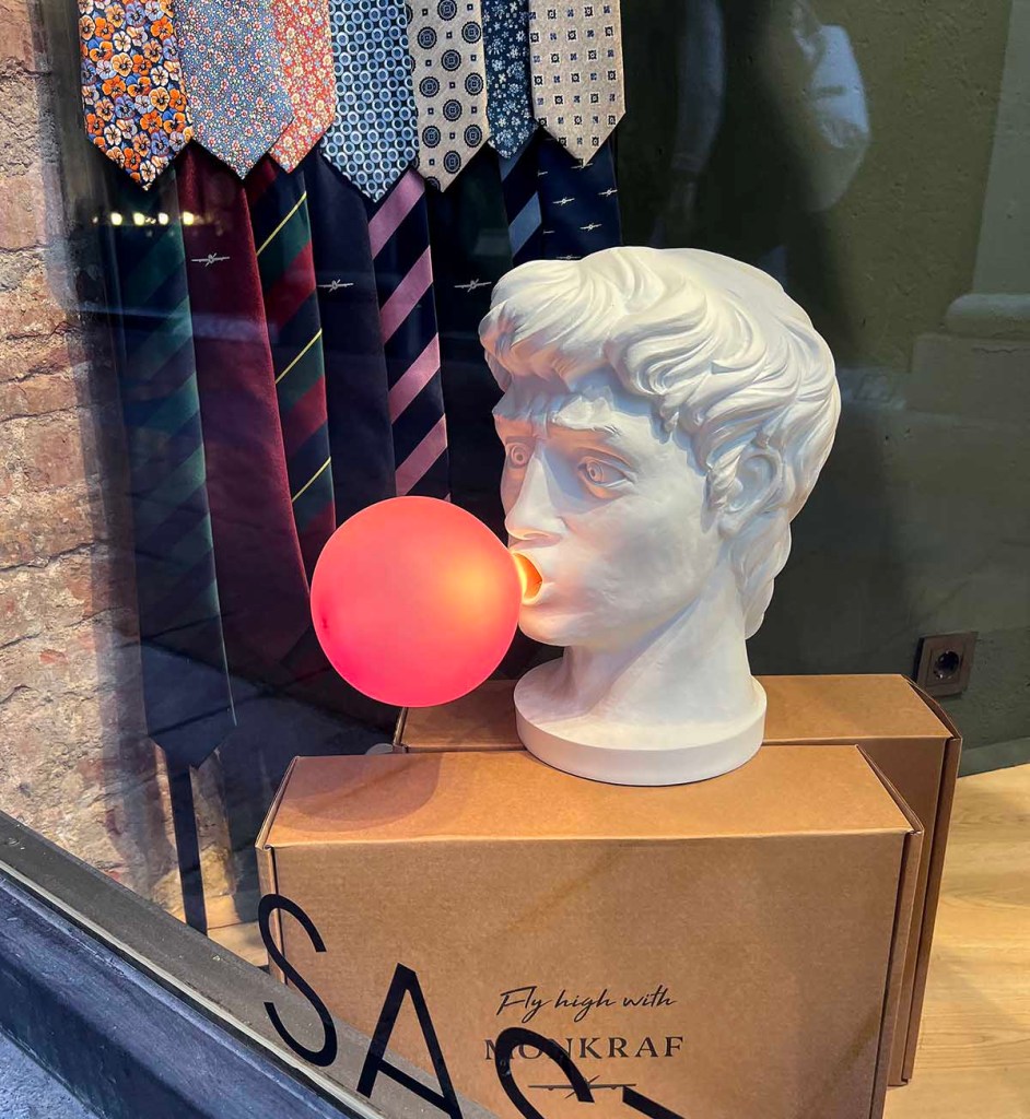 • Una tienda de ropa de hombre muy elegante. Lo único que quiero es la lámpara. La encontré online por 182,39 €. Tan tentador y tan innecesario. (¡Pero lo quiero!)