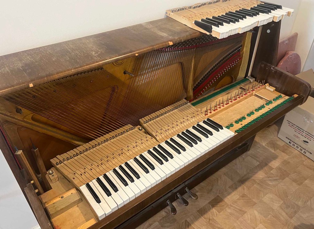 San Geraldo investigó cómo deshacerse de nuestro piano. Es un piano feo con daños por agua y ocupa demasiado espacio. Estos viejos, menos costosos, no tienen valor de reventa y nadie quiere pagar para que lo trasladen, especialmente si tienen que bajarlo por siete tramos de escaleras. Con más investigación, SG aprendió a desmontar un piano y lo intentó a partir del jueves. Tenía ocho videos de YouTube para ver que explicaban cada fase, y logró un gran progreso. En esa etapa, existía la posibilidad de que las partes restantes estuvieran pegadas, lo que sería un cambio radical.