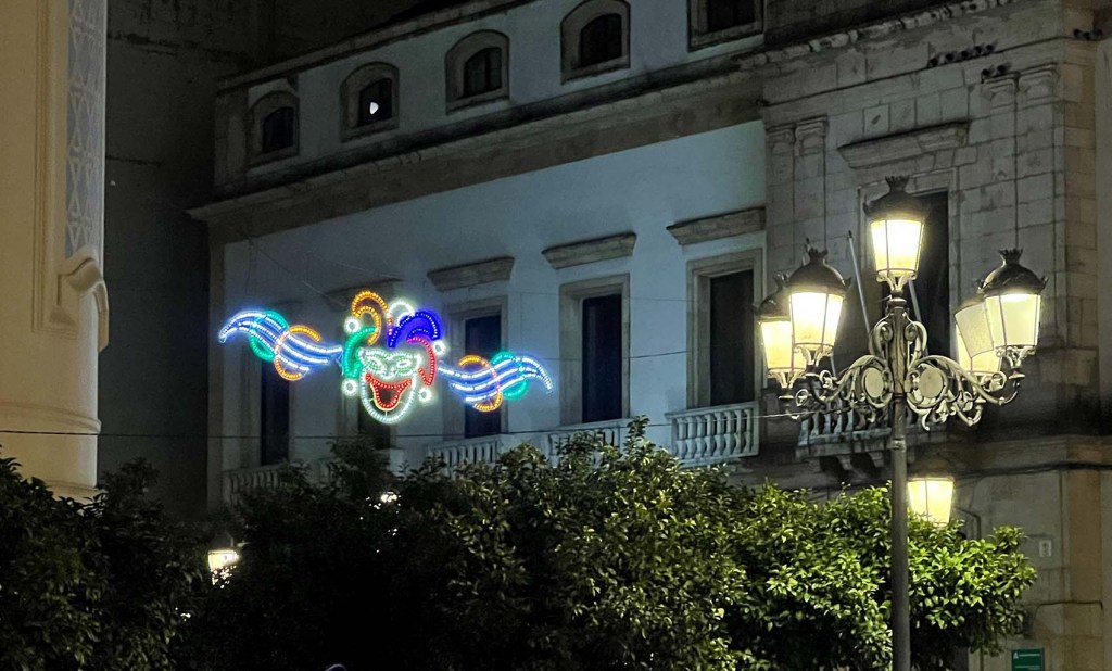 There’s a parade next weekend and all sorts of competitions during Carnaval. The two most common musical groups are comparsas and chirigotas. A comparsa consists of usually 12–16 performers and the singers and musicians tend to be of a higher caliber than those in a chirigota. Chirigotas are usually 7–12 performers and are more humorous and satirical, and higher energy. I’m hoping to catch a chirigota before the festitivites end. Chirigotas tend to perform randomly in the streets in addition to performing on stage. I’m pretty sure the group I saw last night (watch below) was a comparsa.