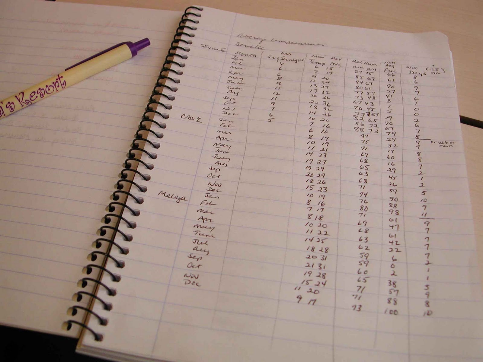 | JERRY’S SPREADSHEET ON THE ROAD. WEATHER COMPARISONS. |