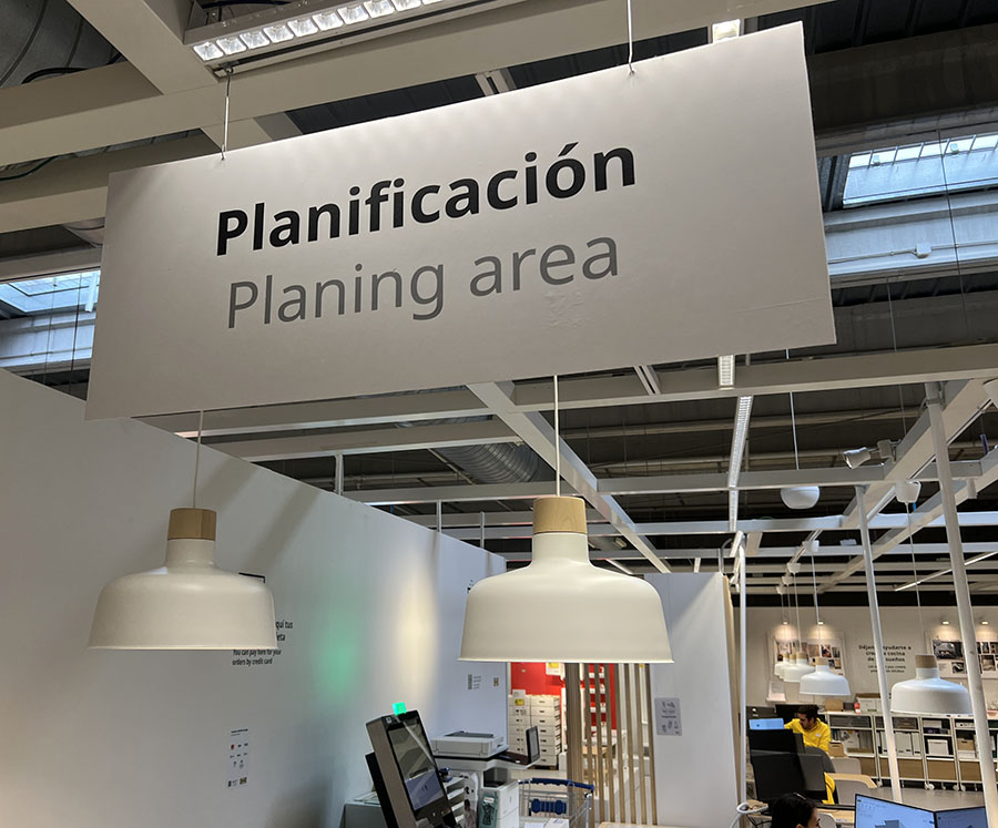 • IKEA debería haber hecho que alguien revisara ese letrero. La ortografía correcta es “planning”. “Planing” significa rozar la superficie.