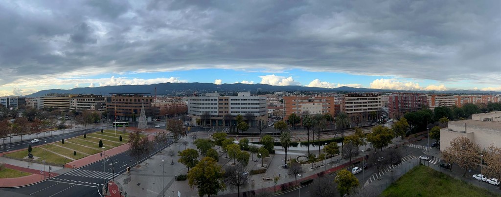 El pronóstico del tiempo pronosticaba que hoy sería el mejor día de la semana, comenzando con algo de sol. No fue así, como pueden ver en nuestra vista matutina, arriba, desde la terraza. Y ahora es “posible” lluvia esta tarde. Últimamente, la posibilidad de lluvia era una garantía de lluvia. En fin. He notado que 10C/50F nos parecen muchísimo más fríos que antes. Supongo que todos estos años en climas mediterráneos nos han adelgazado la sangre. A pesar de las quejas, estoy enamorado de nuestra ciudad.