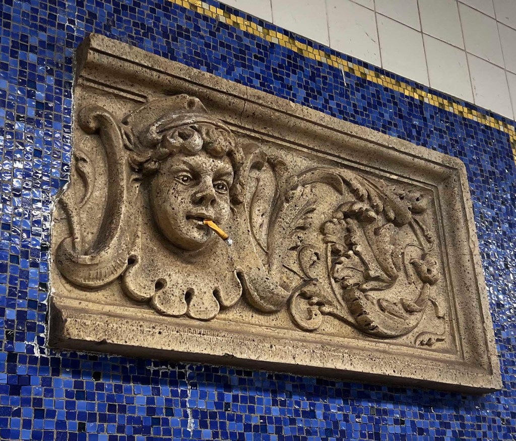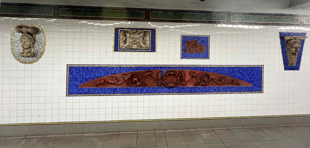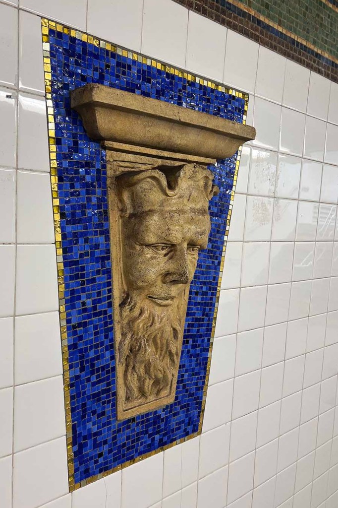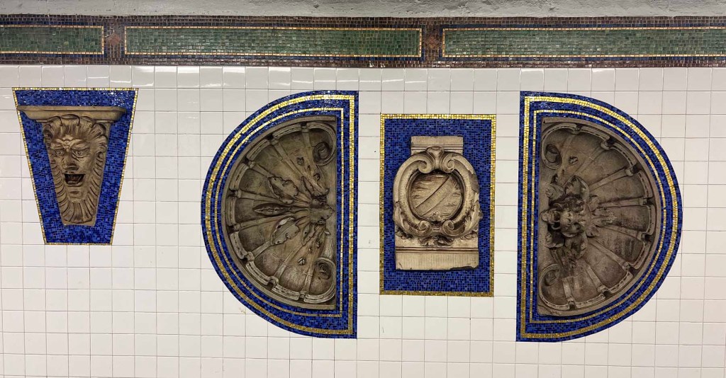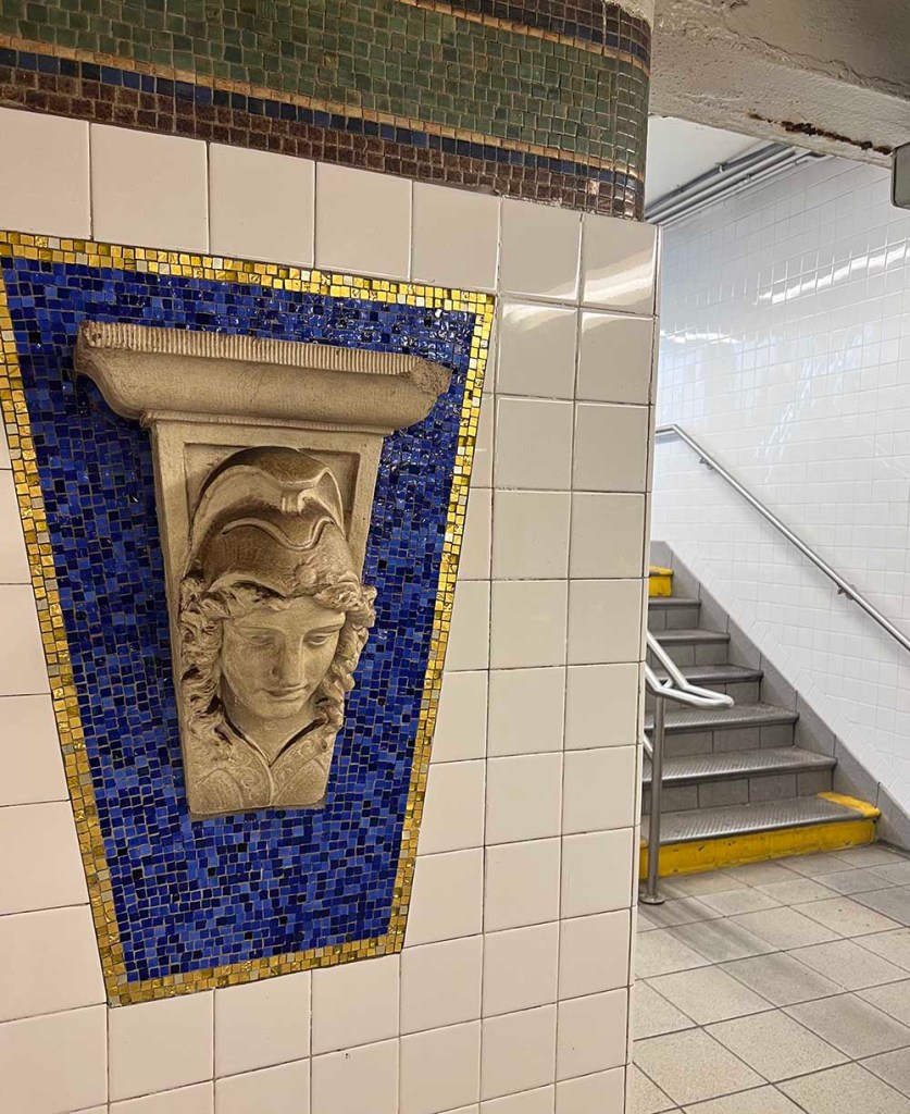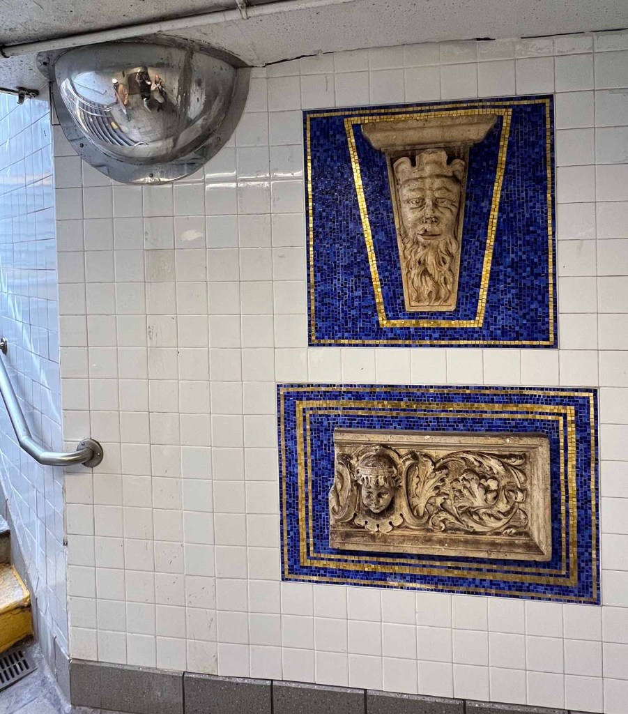 The Eastern Parkway subway station was renovated in recent years with the addition of an entrance right on the plaza in front of the Brooklyn Museum, and more recently with a slick new elevator which The Kid Brother prefers to use. The station is now called Eastern Parkway Brooklyn Museum and includes actual architectural artifacts (from the Brooklyn Museum’s collection) that were saved before many NYC buildings were demolished.