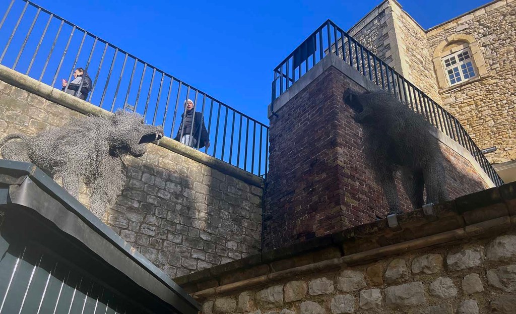 Exotic animals were often gifted from one king to another in medieval times. Those poor animals. Thankfully, all that’s housed at the Tower these days are galvanized wire replicas created in 2010 by artist Kendra Haste.