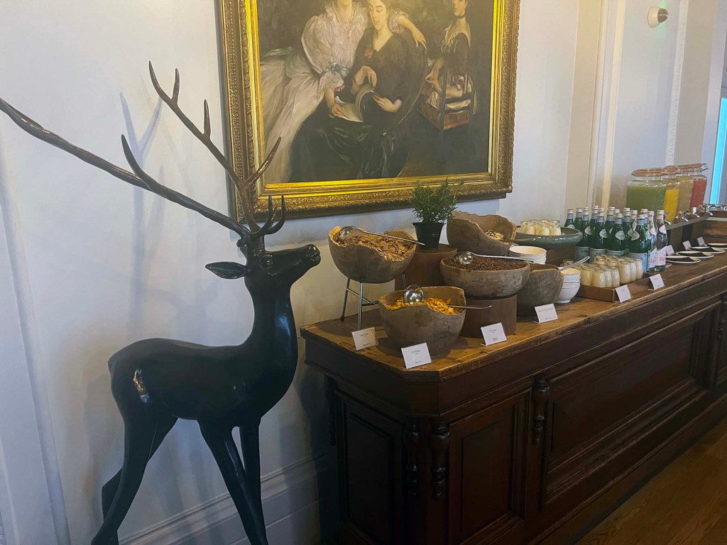 Los focos empotrados en los techos muy altos de nuestra habitación enloquecían a San Geraldo. No hay luces en los espejos. No hay luces en el escritorio. Como muchos edificios antiguos, la presión del agua era problemática. Además, tuvimos que esperar 10 minutos para que el agua se calentara. Se acabó pedirnos que “salvemos el planeta” no lavando nuestras toallas todos los días. Pero la bañera era una pesadilla especial: tan estrecha que mis pies no cabían de lado cuando me duchaba. Mi juanete en el pie izquierdo y la fascitis plantar del derecho sufrían un infierno todos los días cuando golpeaban los lados curvos de porcelana. Muy incómodo. Aún así, me quedaría allí de nuevo. Pediría una habitación accesible con ducha a ras de suelo y aguantaría la iluminación y la presión del agua.
