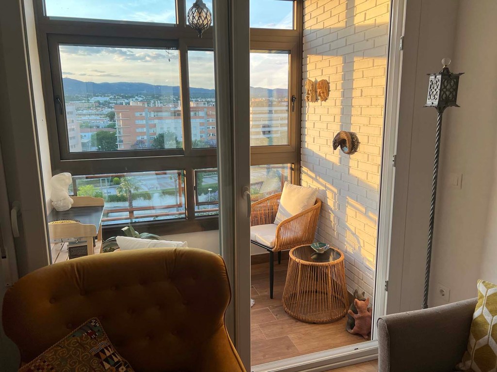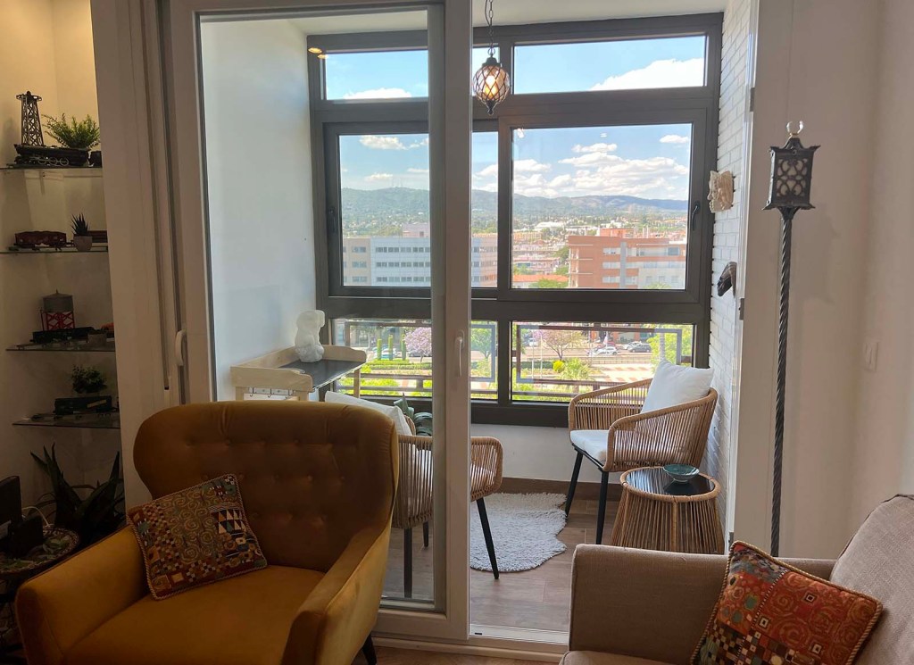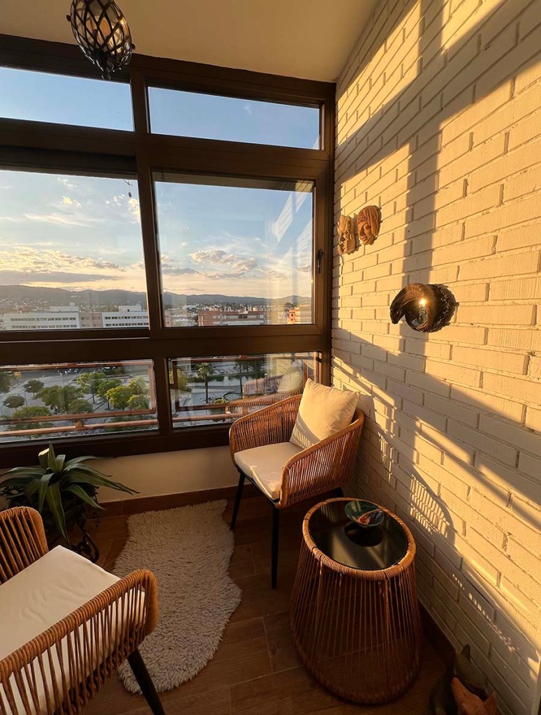 I’m not ready to model my two new linen shirts but here are some in-progress photos of the terrace. The items on one wall are only there because there were existing hooks. I like where the two faces landed but maybe not the best spot for the stag horn mirror. We have a big mirror for the opposite wall that I’ll probably hang today. It will require drilling. The rug is Dudo’s. Both cats were out there when San Geraldo woke up this morning but they haven’t tried out the chairs.