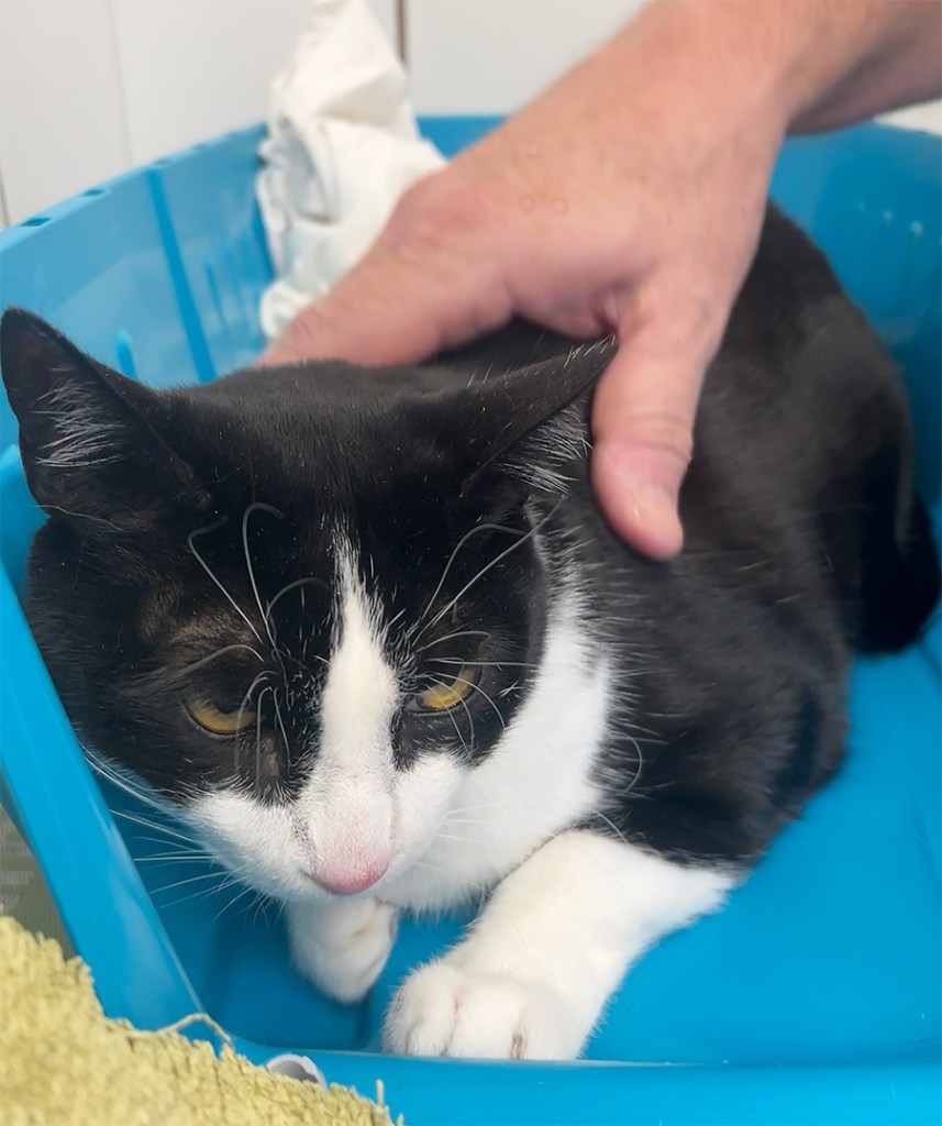 Entonces, mañana por la tarde, Moose debería estar en casa y listo para recuperarse. Nuestra sobrina Lindy (la susurradora de gatos) sugirió comprarle un poco de paté de gato ayer y agregarle caldo si fuera necesario. SG compró el paté y encontró un alimento líquido. Eso funcionó. Aunque Moose no comió mucho, comió mucho más de lo que había estado comiendo. Y a Dudo le encantaron las nuevas delicias.