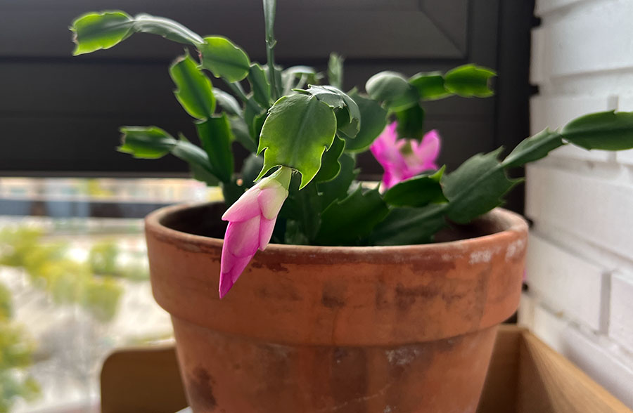 El cactus de Navidad sigue floreciendo, feliz. No lo giramos, no lo movemos, simplemente lo admiramos. Los gatos siguen siendo gatos.