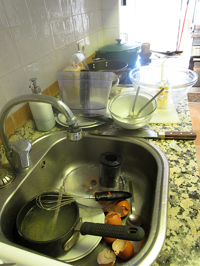 I had to clean up after us both. Take a look at the photos and tell me who YOU’D rather clean up after. (I’m not asking who you’d rather have cook for you!)