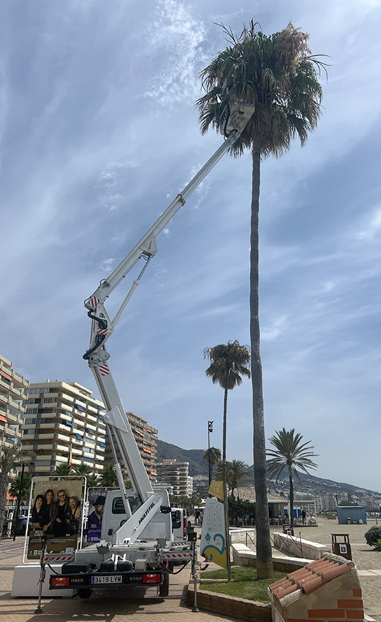 • Se cortan las palmeras para el verano. Lo dejaron allí por un momento y pensé: “Ese es un alcance tremendamente largo”.