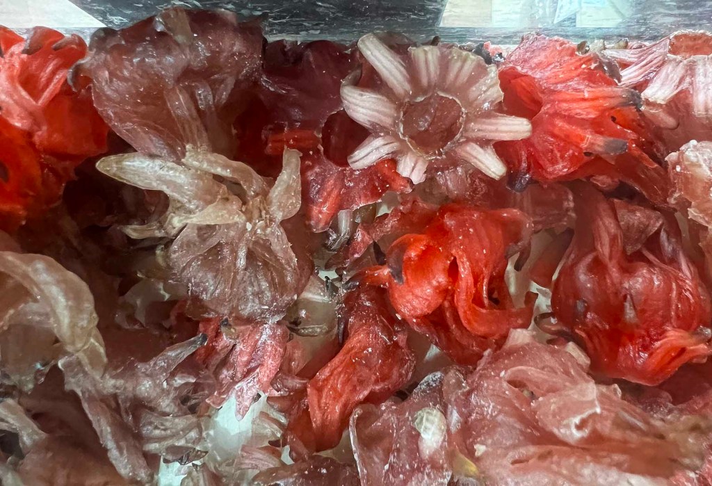 • Flores secas y confitadas de hibisco. Delicioso pero con demasiada azúcar.