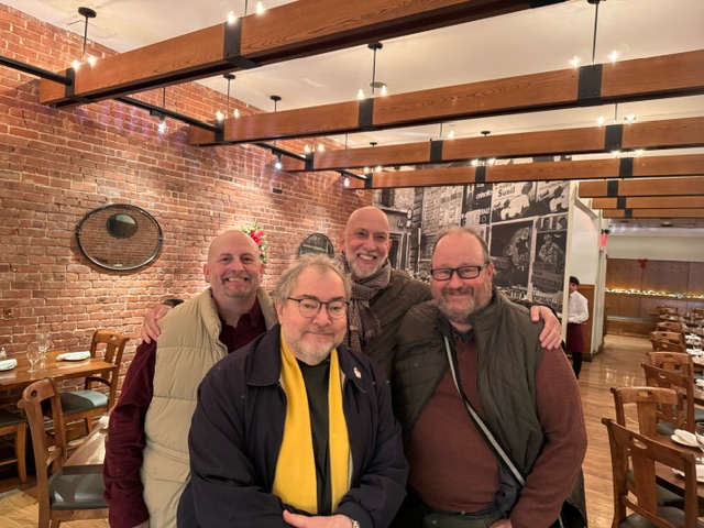 Some of you already know about the day of the Bloggers in New York City. David (Travel Penguin) and his husband, J (the on-again off-again blogger known as Wicked Hamster), trained up to New York so we could enjoy a meal together. David suggested we gather some others, and Sean (Sassybear) and his husband, Jeffrey, took the train down from near Albany. We all met for lunch at an excellent Italian Restaurant on W. 47th Street selected by Sean called Trattoria Trecolori.
