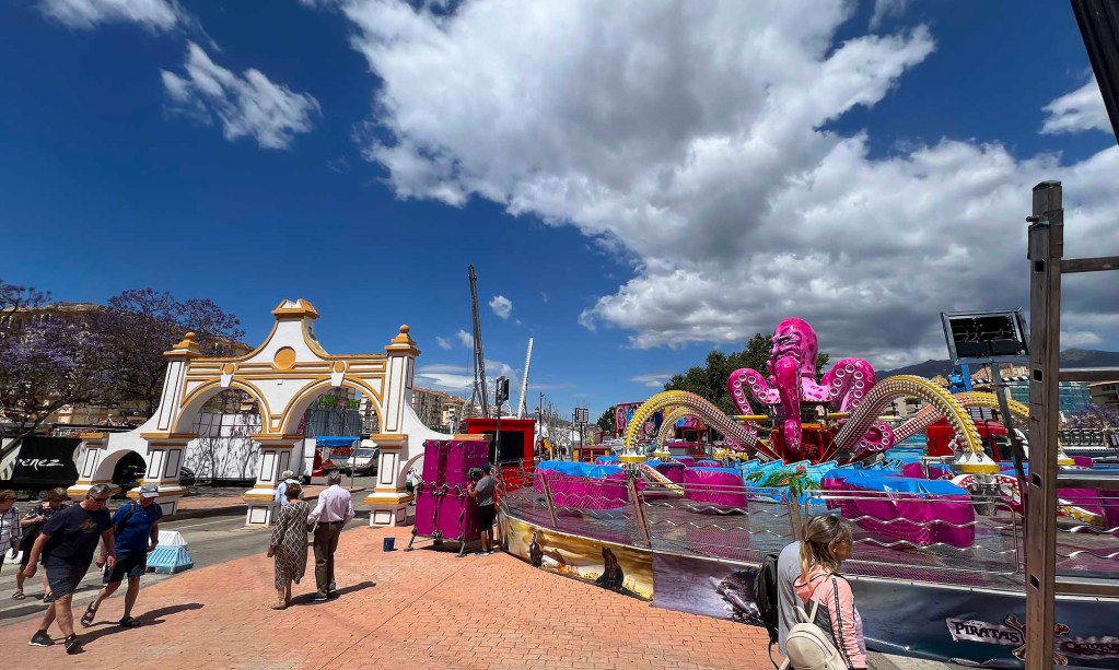It’s now called the International Fair of the Countries of Fuengirola and it begins this Thursday. When we first moved here in 2013 and for many years to follow, it was still called the International Fair of the Towns. The parade, Saturday, with its music and costumes, is my favorite part but I won’t be doing all that standing around this year (2 hours or more). So, if you’re interested, click here to check out a bit of 2018. I walked through the fairgrounds Tuesday to see the activity. Today is I’m sure much busier and more festive looking.