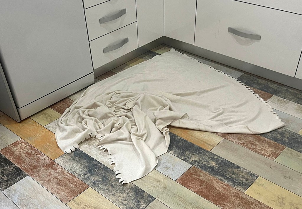San Geraldo está terminando de armar la nueva isla de cocina. Se ve genial. A los gatos les parece fascinante. SG colocó una manta en el piso de la cocina para tener un espacio de trabajo seguro. Dudo, sin embargo, siguió reordenando la manta. La palabra estadounidense para este tipo de manta es “throw”, que significa “tirar”. San Geraldo colocaba cuidadosamente el “throw” y luego Dudo la tiraba. Finalmente, eso lo aburrió y persiguió fantasmas desde su árbol para gatos.