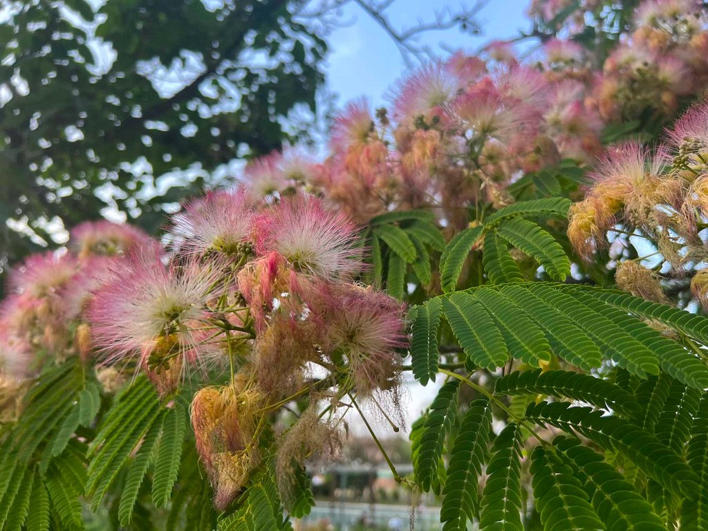 We were back at La Fabbrica the other night for dinner. I had a salad new to me and loved it. Goat cheese salad with smoked bacon, a mix of lettuces, sunflower seeds, olive oil, smoked salt, and balsamic vinegar. I took more photos of the fabulous mimosa trees in Juan Carlos I Park before dinner.