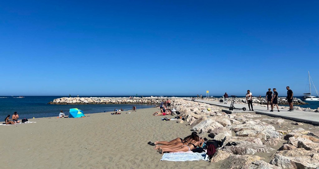 • A beautifully renovated chiringuito (beach bar). Redone a few years ago, the plastic vertical garden and plastic logo were not the best ideas under the Mediterranean sun.
