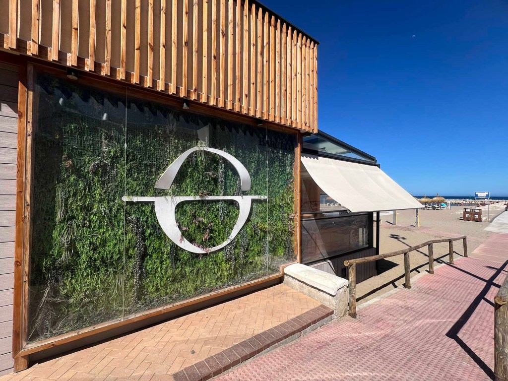 • Un chiringuito bellamente renovado. Rehecho hace unos años, el jardín vertical de plástico y el logotipo de plástico no fueron las mejores ideas bajo el sol del Mediterráneo.
