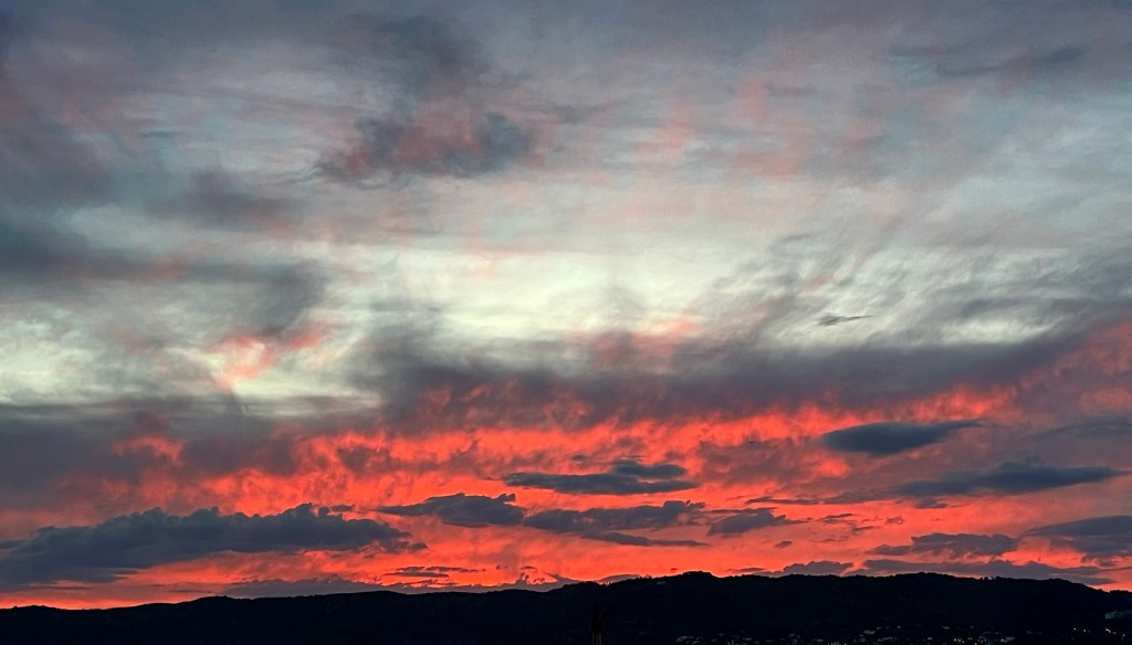 Now it’s time for me to buzz-cut my hair, trim my beard, and shave. I’ve got to at least try to look presentable for Evan and Sarah who arrive in 2-1/2 hours. Don’t miss Thursday’s sunset below.