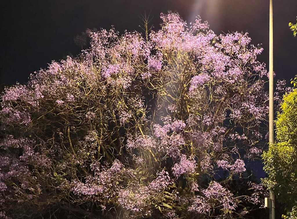 Jacarandas are in bloom all over town. I took a picture of one in lamplight last night, but will get shots during the day of the rows of them.
