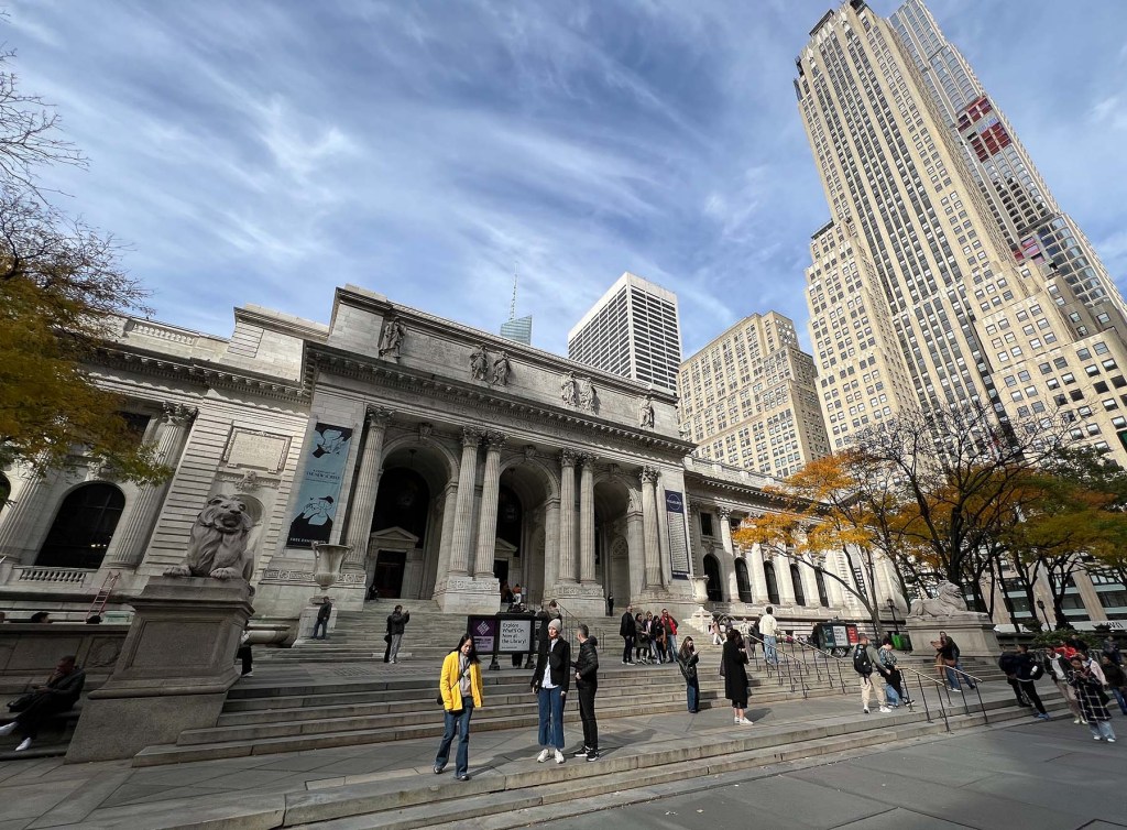 La sucursal principal de la Biblioteca Pública de Nueva York, ubicada en la Quinta Avenida, entre las calles 41 y 42, es una maravilla de estilo Beaux-Arts inaugurada en 1911. Hace años que no entro y, cuando paso por allí casi todos los años, simplemente no tengo tiempo suficiente para encontrarme con Cesar y Daisy en la Grand Central Station. Tomo el tren hasta la calle 42 y subo desde el metro en Bryant Park, un hermoso parque justo detrás de la biblioteca.