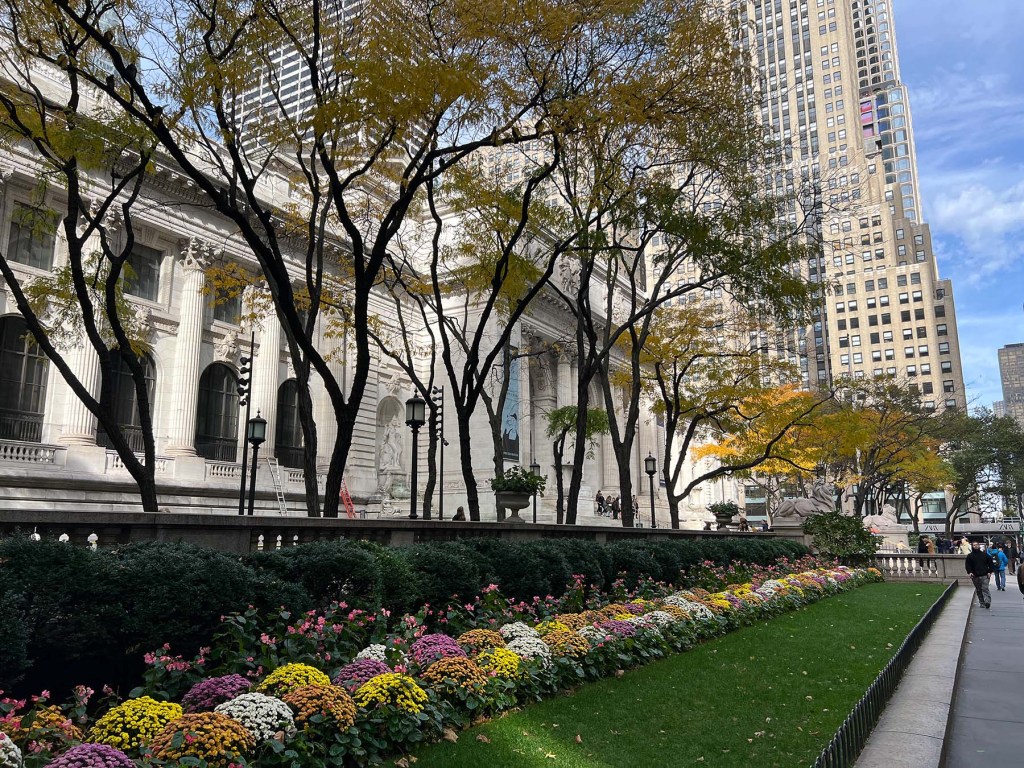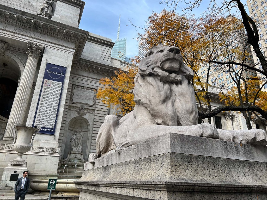 The New York Public Library main branch on Fifth Avenue between 41st and 42nd Streets is a Beaux-Arts wonder that opened in 1911. I haven’t been inside for years and I simply don’t have enough time when I walk by it almost every year to meet Cesar and Daisy at Grand Central Station. I take the train to 42nd Street and come up from underground at Bryant Park which is a beautiful park directly behind the library.