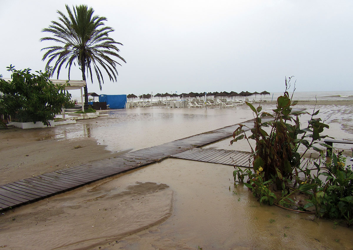 There’s a lot of work to be done on the beaches. Boardwalks and facilities were torn apart by the rain and mud. Huge trenches have been cut through the sand and the entire beach and shoreline need to be re-graded. I don’t know what they do about all that mud on the beach. Maybe it’s heavier than sand and will just sink? Right now, it’s not very pleasant, but the tourists are back out there sun-bathing. I don’t blame them. I saw many sad-looking people dragging their suitcases to the train station yesterday. (Click the images for bigger mud pies.)