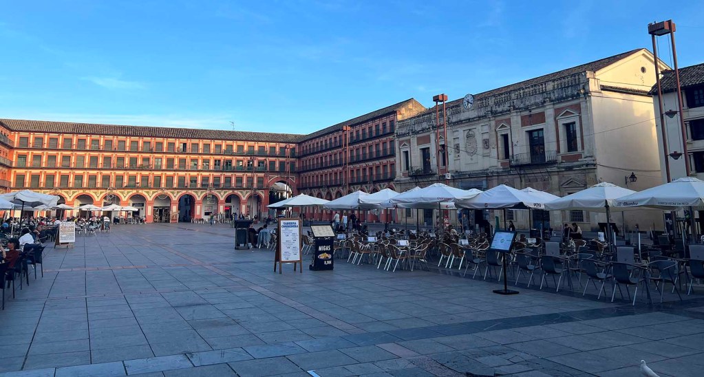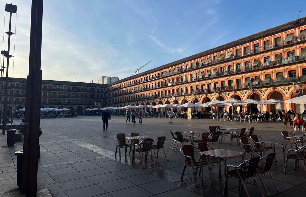 La otra tarde, San Geraldo tenía un masaje programado a unos 10 minutos de donde estábamos, así que decidí ir caminando con él, explorar el barrio durante un par de horas y luego quedar para cenar. Cerca estaba la Plaza de la Corredera, la única plaza principal rectangular de Andalucía. ¡Menudo título a la fama!