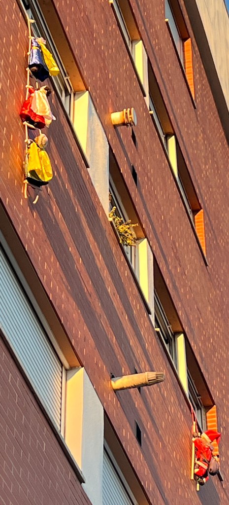Al llegar de nuevo al Paseo de Córdoba, vi que en un edificio al otro lado de la calle no solo estaban Papá Noel, sino también los Reyes Magos subiendo por las escaleras de un apartamento. Me encanta ver a los Reyes Magos en la escalera, y es la primera vez que los veo en Córdoba este año. Así que tuve que cruzar la calle para verlos un poco mejor.
